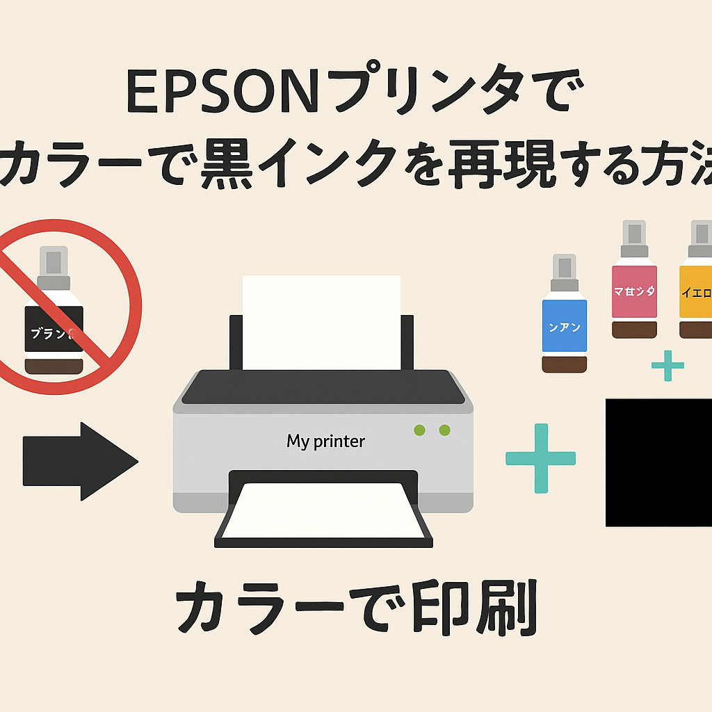 プリンタを使っていると、**「黒インクだけ切れてしまった!」**という場面、意外と多いですよね。特に急ぎの印刷のときに限って黒が出ない…。そんなときに役立つのが、カラーインクで黒を再現する設定です。今回はその方法をわかりやすく解説します。
