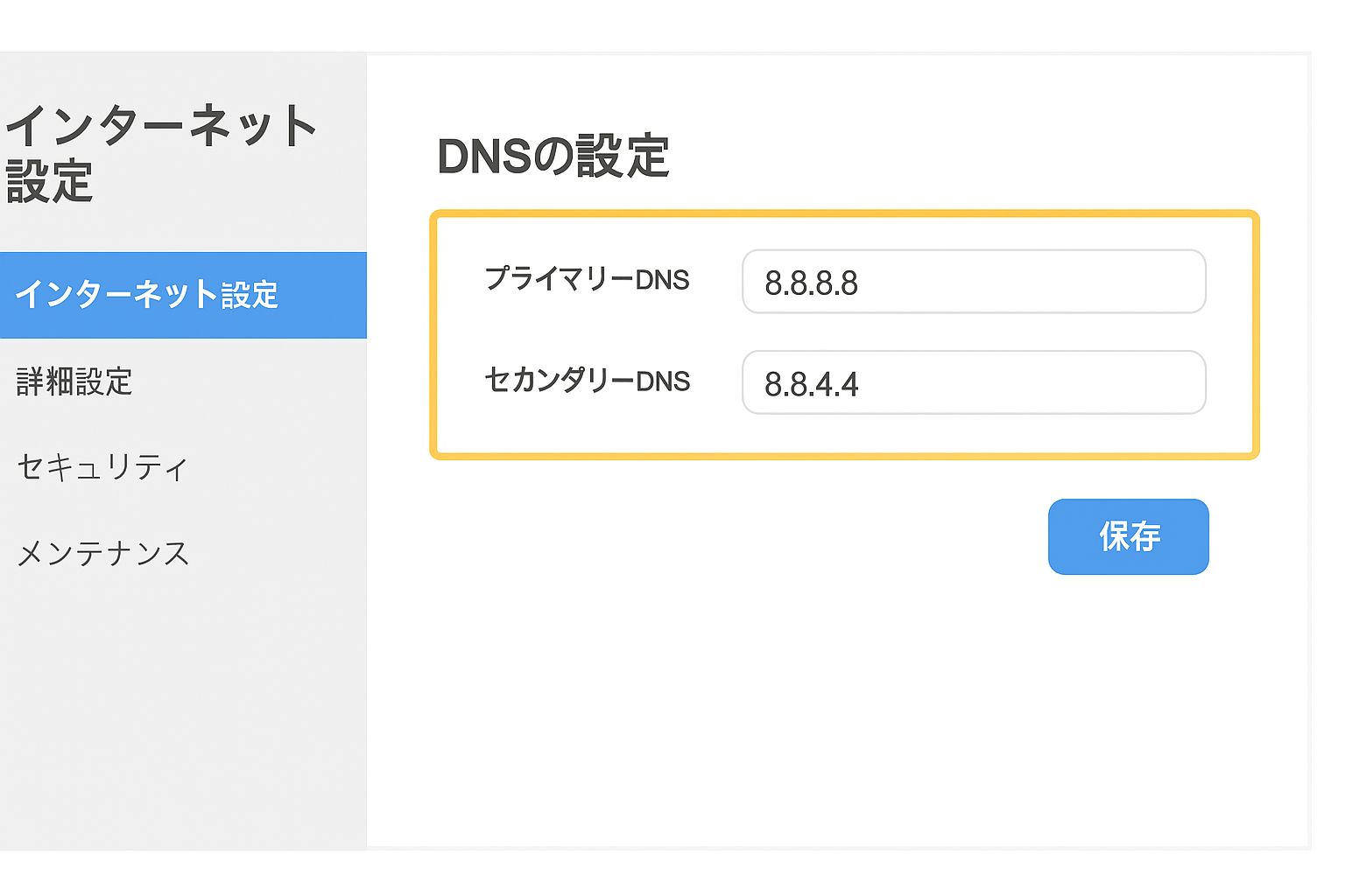 対処法: WH832Aの管理画面から、DNSを以下のように変更してみましょう。