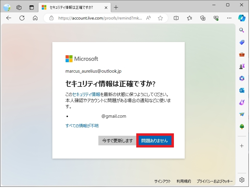 「問題ありません」をクリックして